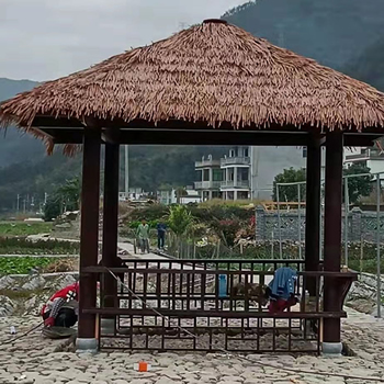 茅草亭子指的是在防腐木亭子上面蓋一層茅草,可以是真茅草,也可以是仿真茅草,一般仿真茅草用得比較多一些,我們是專業(yè)的防腐木茅草亭生產廠家,可定做各種款式的四角茅草亭、六角茅草亭等。